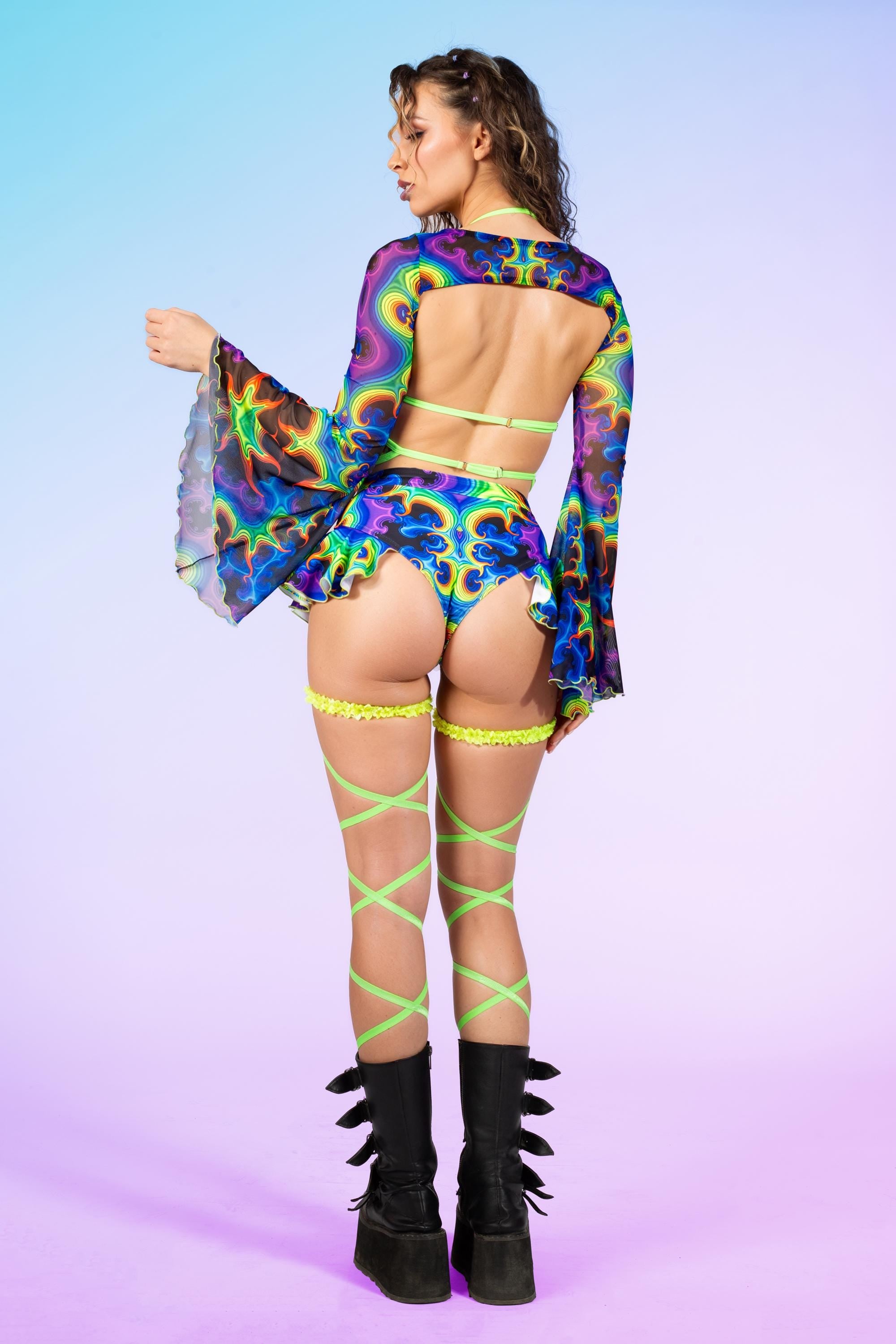 Highly Acidic Butterfly Shrug Set Lycra, Mesh, UV Reactive
