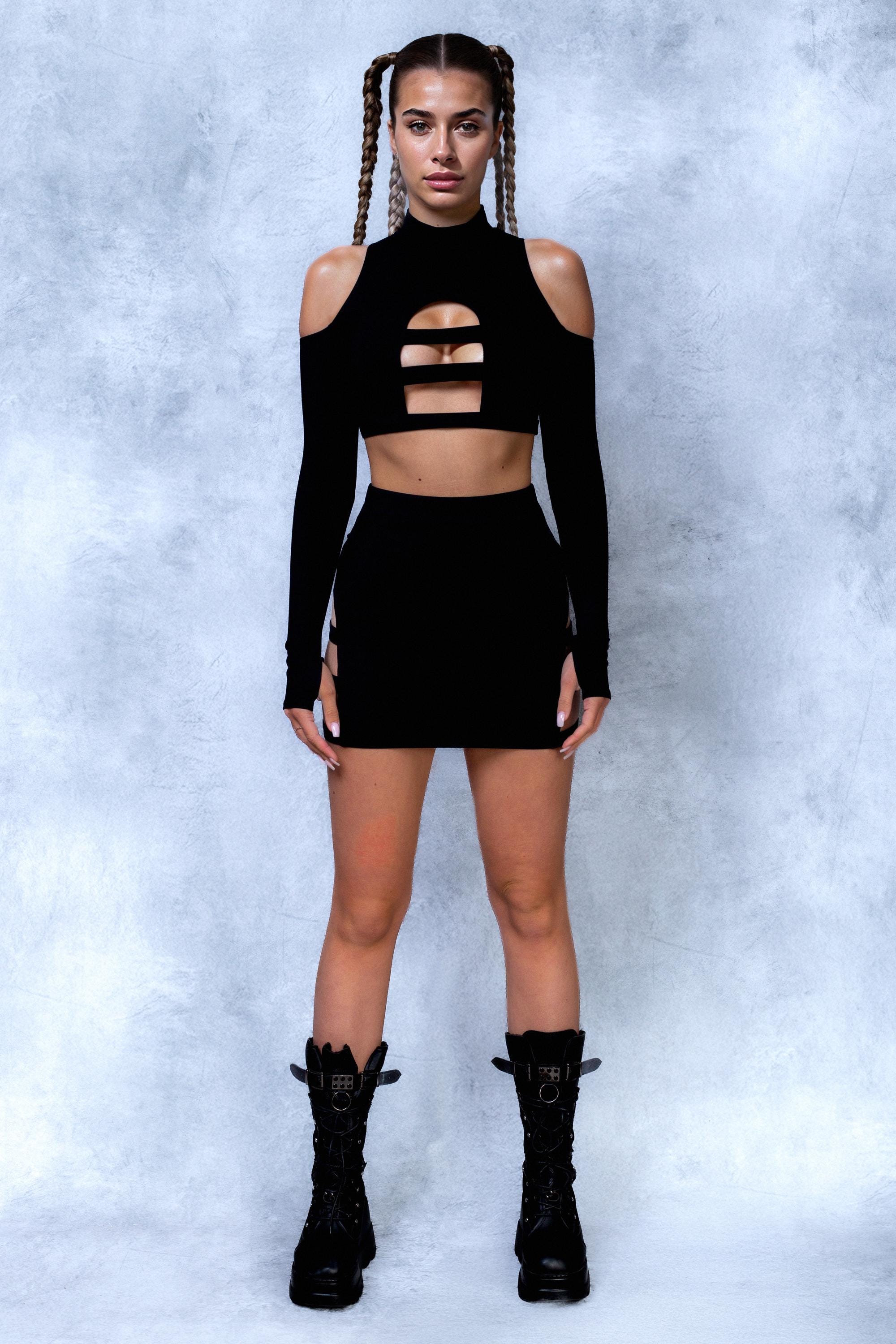 ["$44.99 - $129.99","3XL","5%\u002610%","6%-up","active-in-stock","all-halloween","Black","BOGO100","BOGO70","fest-1-2025","Festival","Halloween","L","Long Sleeve Top","Lycra","M","Performance","Rave","rave-zone-2025","S","Set","top+skirts","Ultra","Women","women-rave-sets-black-white","XL","XS","XXL"]