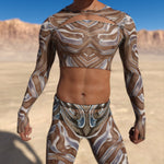 The Mecha Vortex Mesh Male Biker Shorts - get ready to redefine how you show up-and how people remember you. Let your look break through the noise with hypnotic prints and fearless structure. Crafted for the main stage and the underground alike, this piece radiates high-voltage style. This outfit is your statement-raw, radiant, and fully unleashed. It’s sharp, expressive, and built to ride the rhythm of your wildest nights. This isn’t made for quiet nights-it’s made for all-night dancing and head-turning moments.