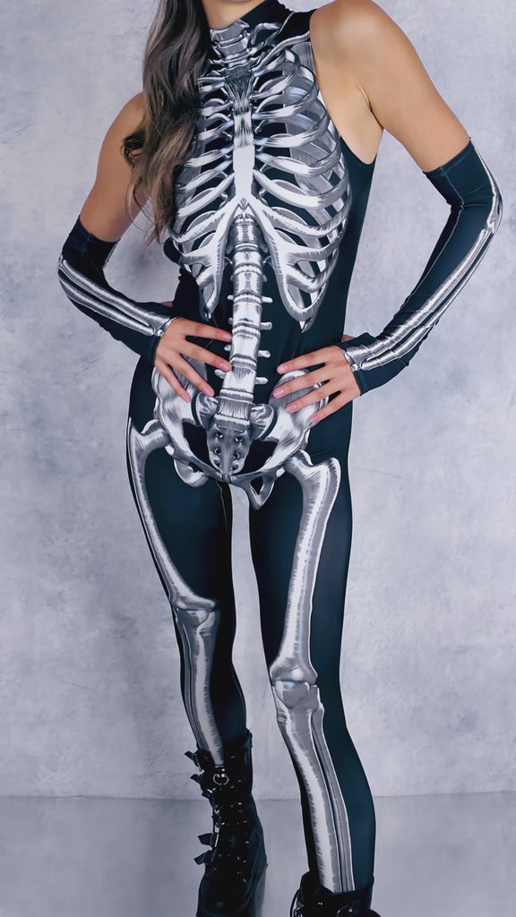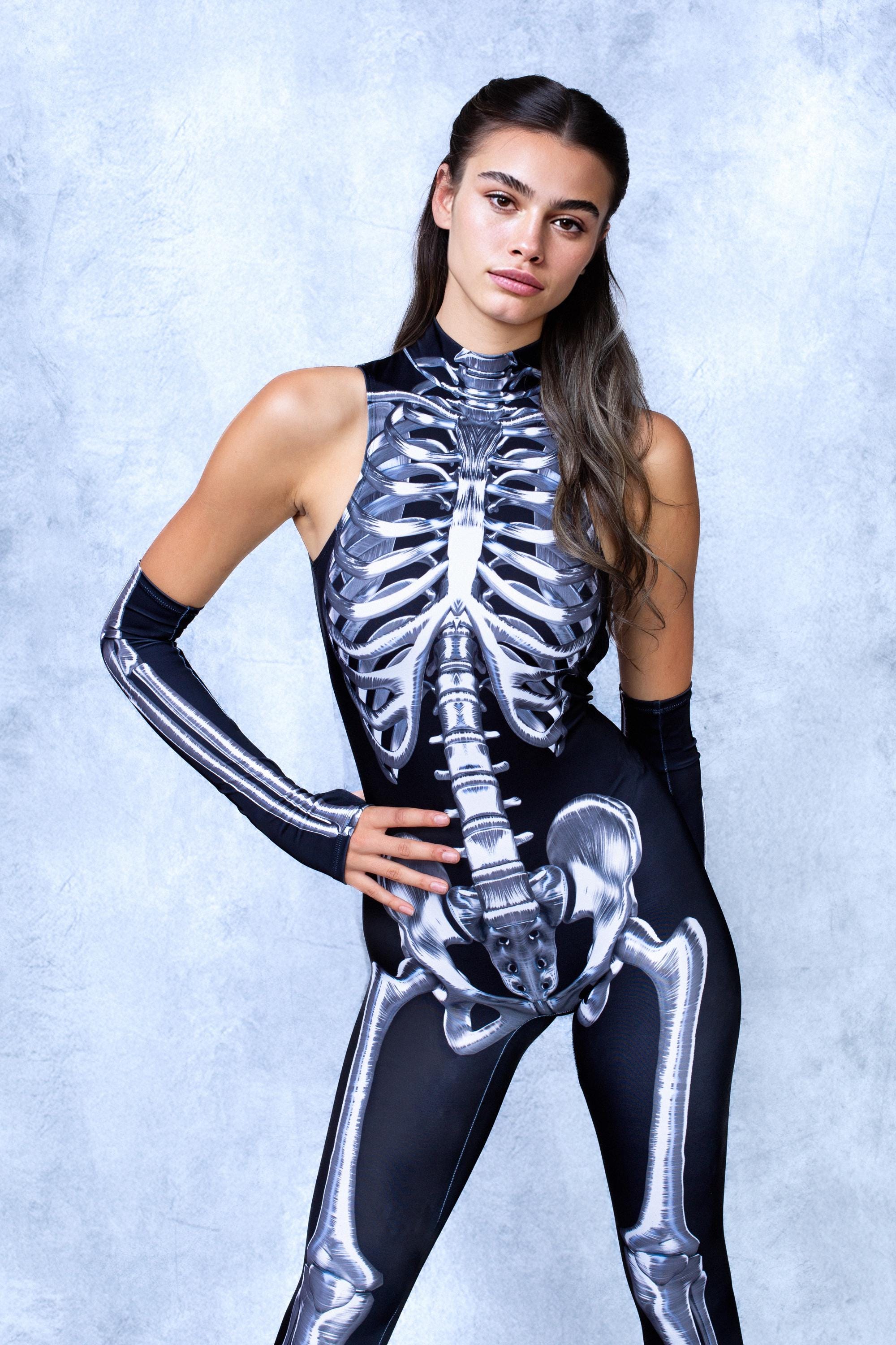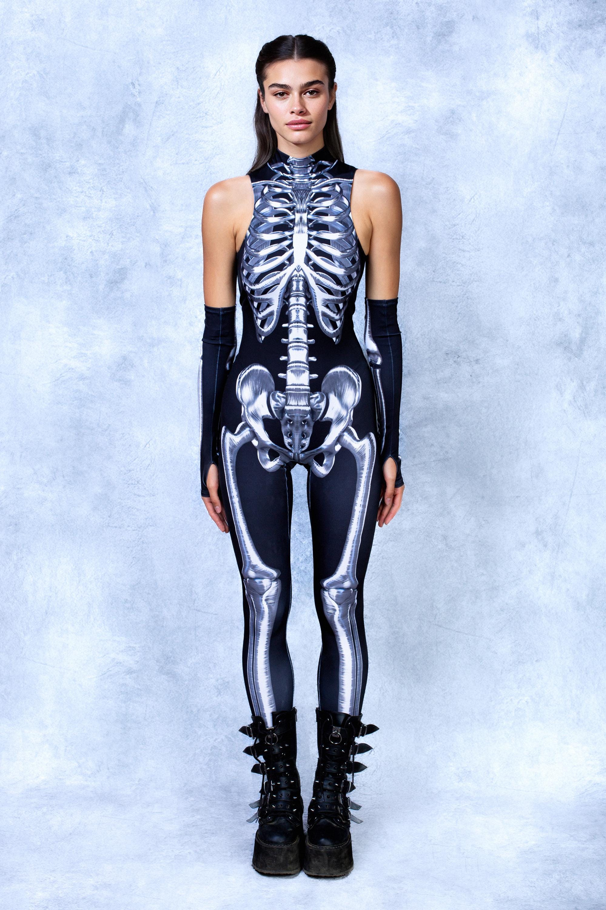 X-ray realness—this catsuit and gloves expose your darkest depths, built to glow, haunt, and slay all Halloween long.