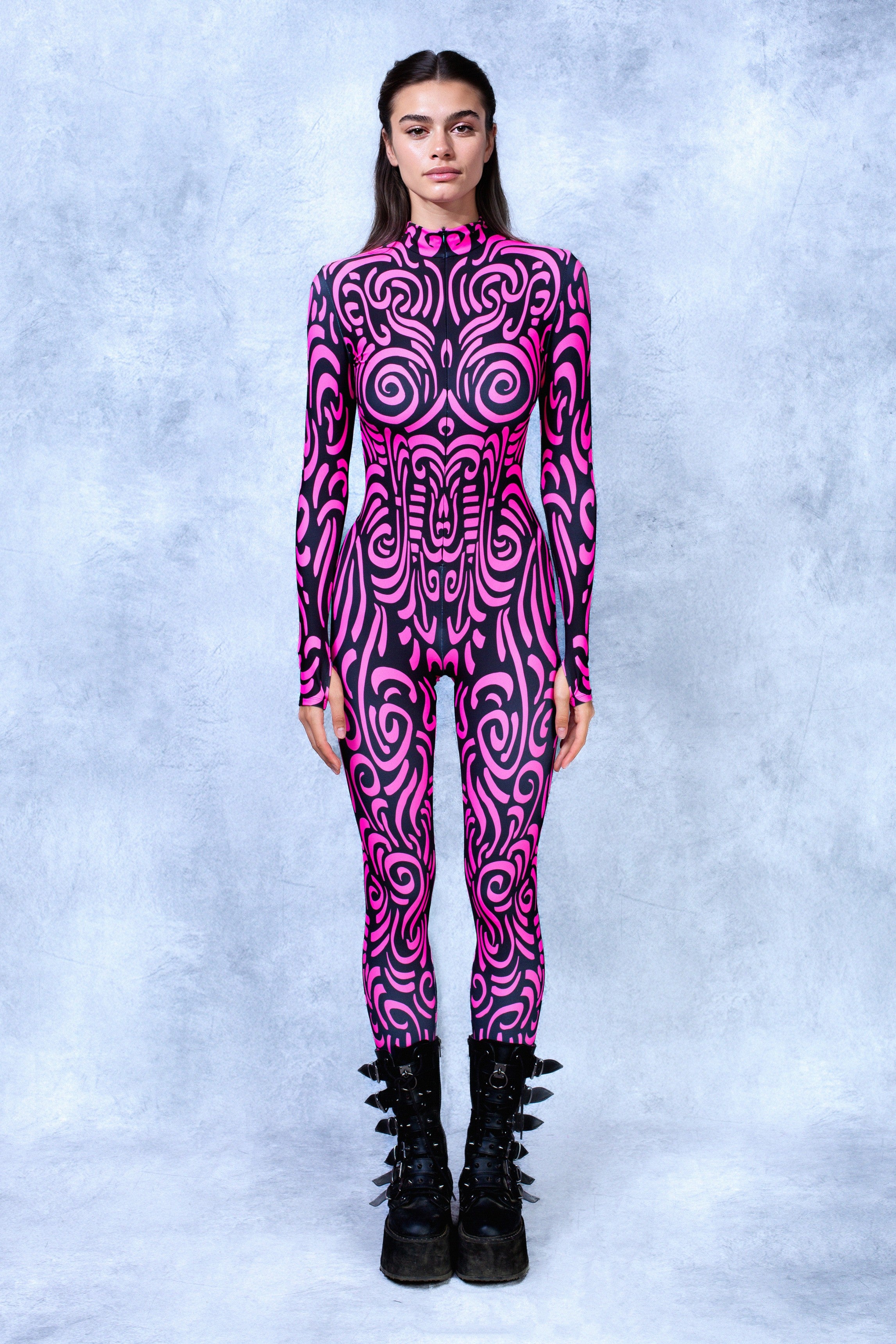 The Totem Pink Costume - this isn’t made for quiet nights-it’s made for all-night dancing and head-turning moments. This is fashion that moves with instinct, built to highlight your rhythm, your fire, and your unapologetic edge. With every movement, you tell a story of individuality, vibrancy, and unfiltered expression. Fuel your festival energy with a set that brings both structure and surreal style. It’s sharp, expressive, and built to ride the rhythm of your wildest nights. It's for the dreamers, the dancers, and the statement-makers who live for the moment.